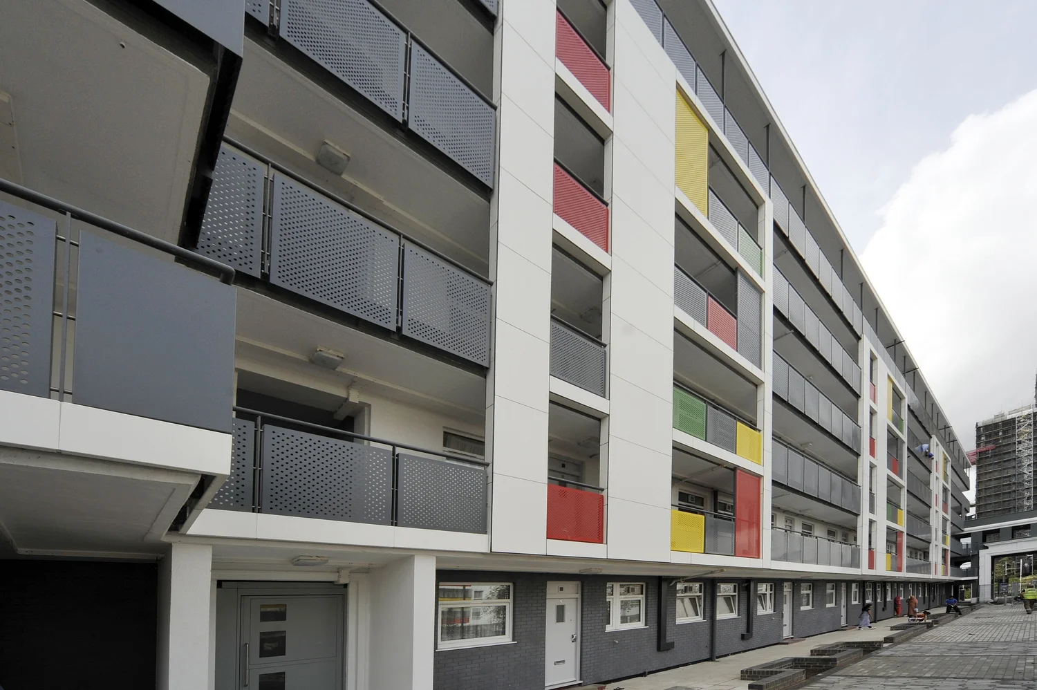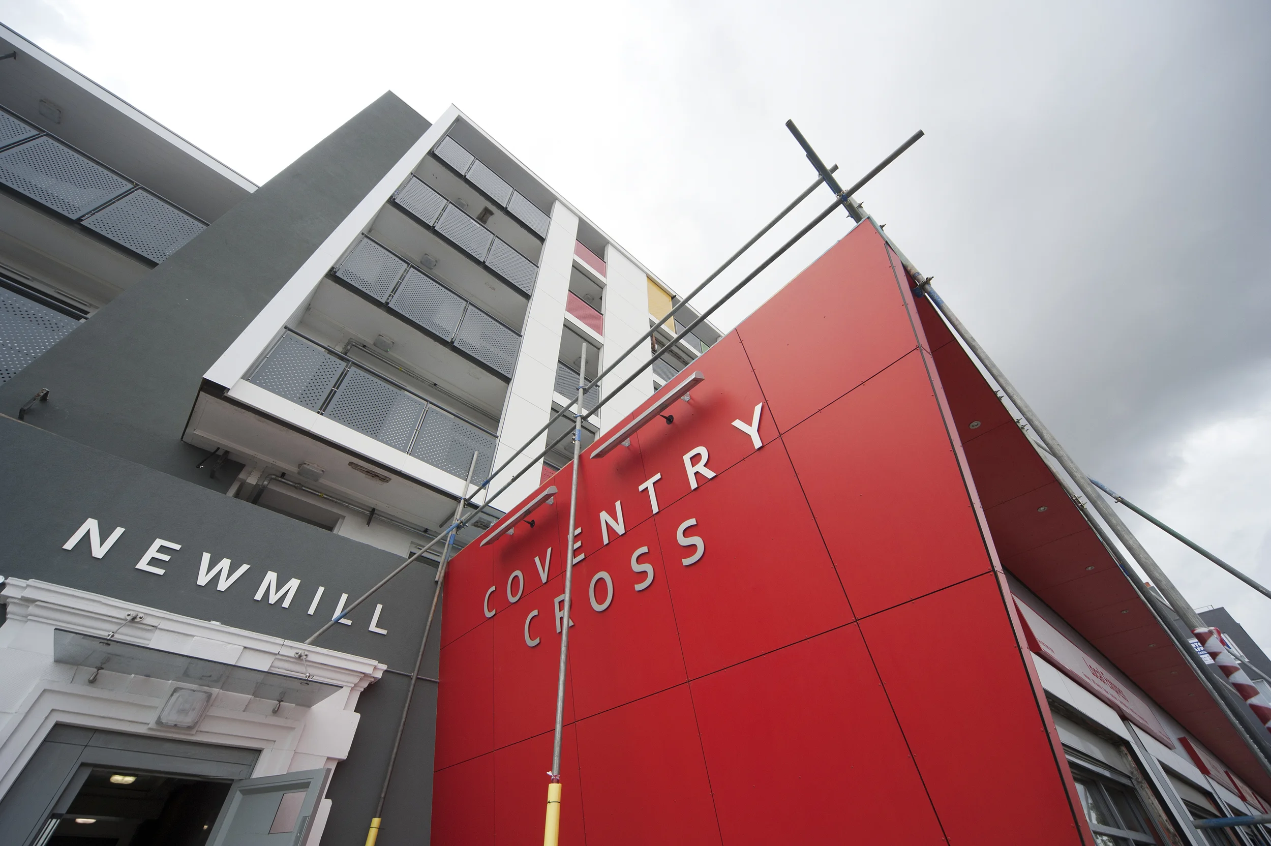 The project was completed for the Durkan Group in 2013 and consists of coloured external wall insulated render and Brick Affect Render, interspaced with Rockclad feature panels and aluminium walkway canopies.